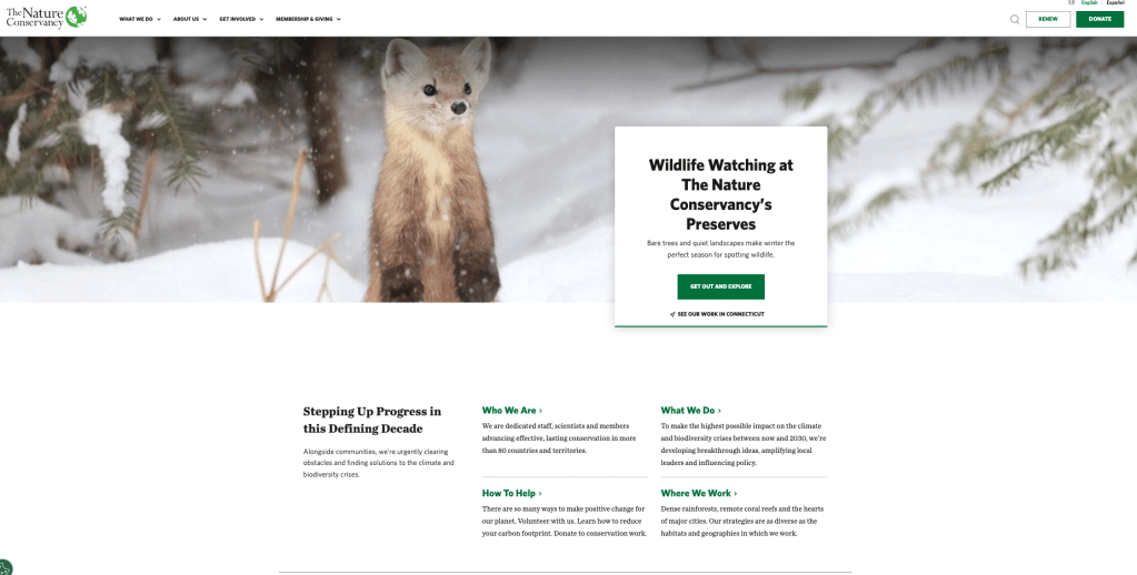 This week, I conducted usability testing sessions on The Nature Conservancy’s website. Given TNC’s massive digital footprint, the goal was to figure out how the current interface facilitates major user journeys such as local engagement, interactive tools, and financial contributions. I wanted to move beyond assuming and observe natural problem-solving behaviors by introducing test subjects to the mix.